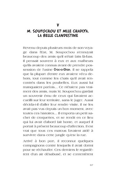 ![]() | 10,00€TVA réduite 5,5% Extraits Mars, 2012 De 8 à 12 ans 14,5 x 21 cm – 88 pages couleur Monsieur Soupochou, chat, salarié et bien décidé à ne pas se laisser marcher sur les pattes... C'est avec beaucoup d'humour que Soupochou, un joli matou tigré, affronte les aléas du chômage, de la délocalisation, de l'expatriation ou encore de la solidarité. Son aventure initie les enfants aux notions qu'ils entendent tous les jours dans les media sans forcément les comprendre. Ce livre leur permet, à travers la vie de Soupochou et de ses camarades, d'appréhender ces notions avec humour. Publié en 2012, année d'élections présidentielle, ce livre de Yayo, illustré par Bruno Robert, n'a jamais été autant d'actualité à l'approche de la présidentielle suivante. Indispensable pour nos chérubins à la découverte du monde.